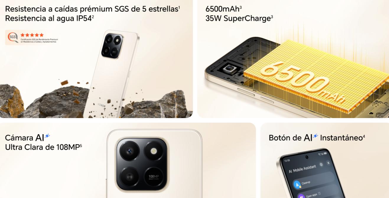 En comparación, la velocidad de carga del HONOR 400 Smart se clasifica de manera competitiva entre otros teléfonos inteligentes de su clase. Muchos dispositivos similares presumen de carga rápida, pero las tecnologías de SuperCarga de 35W de HONOR ofrecen recargas eficientes y rápidas que superan las normas de la industria. Los usuarios se benefician de períodos de recuperación más rápidos y una mayor longevidad de la batería, lo que lo convierte en una de las opciones más atractivas entre los teléfonos inteligentes modernos con baterías de alta capacidad.